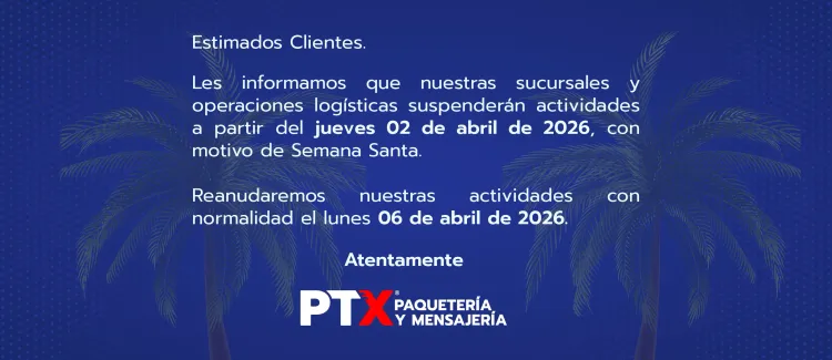 En PTX Paquetería y Mensajería, ofrecemos soluciones logísticas integrales que aseguran la puntualidad y seguridad de tus envíos desde 2019. Nuestra dedicación a la atención personalizada y la mejora continua nos distingue en el sector.
